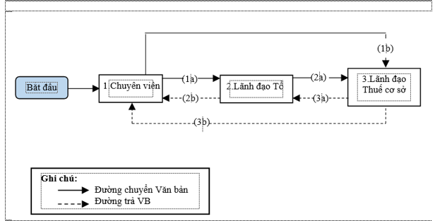 - (1) Chuyển phiếu giao việc đến Tổ trưởng thuộc Thuế cơ sở.b) Xử lý tại Tổ trưởng