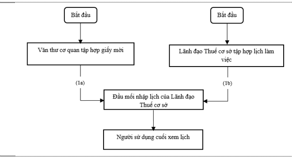 - (1b) Lãnh đạo Thuế cơ sở chuyển các yêu cầu sắp lịch họp của mình cho Công chức được phân công làm đầu mối nhập lịch của Lãnh đạo Thuế cơ sở để sắp xếp lịch họp.b) Đưa lịch làm việc lên hệ thống: