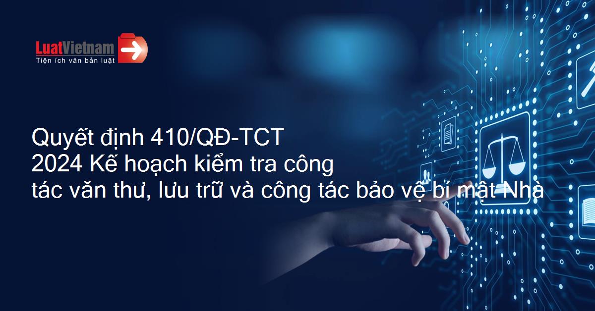Quyết định 410/QĐ-TCT 2024 Kế hoạch kiểm tra công tác văn thư, lưu trữ và công tác bảo vệ bí mật Nhà