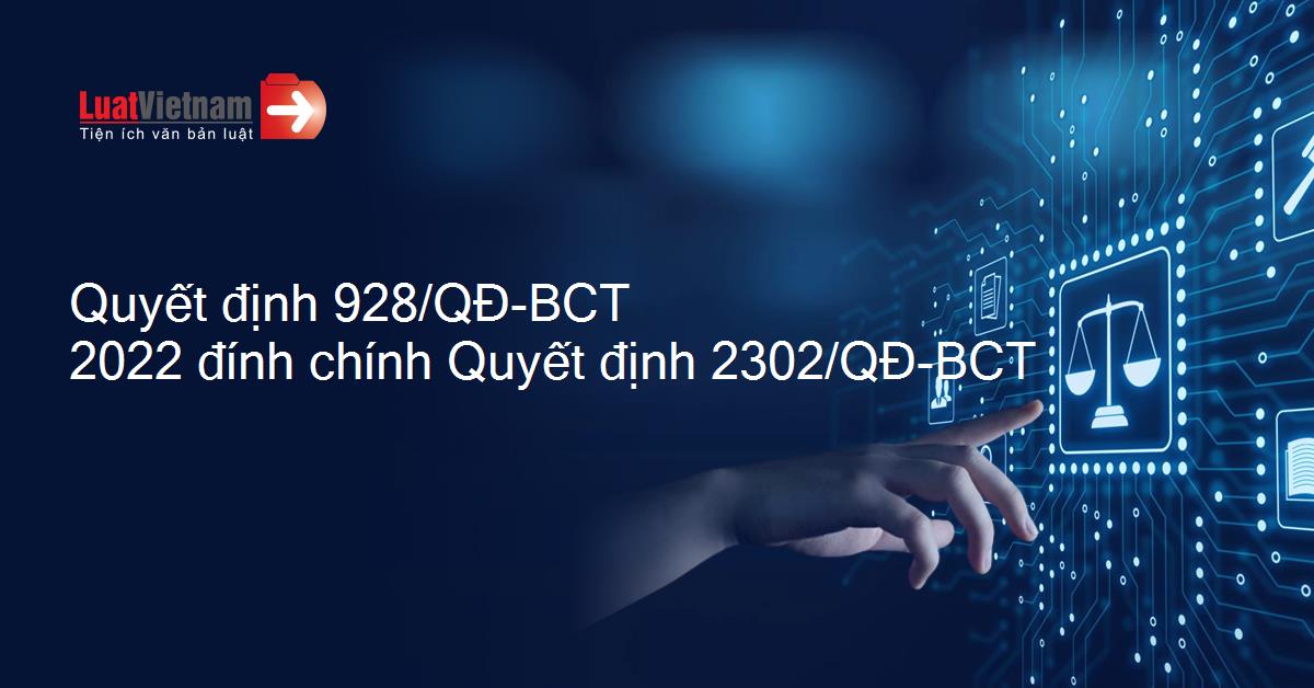 Quyết định 928/QĐ-BCT 2022 đính chính Quyết định 2302/QĐ-BCT