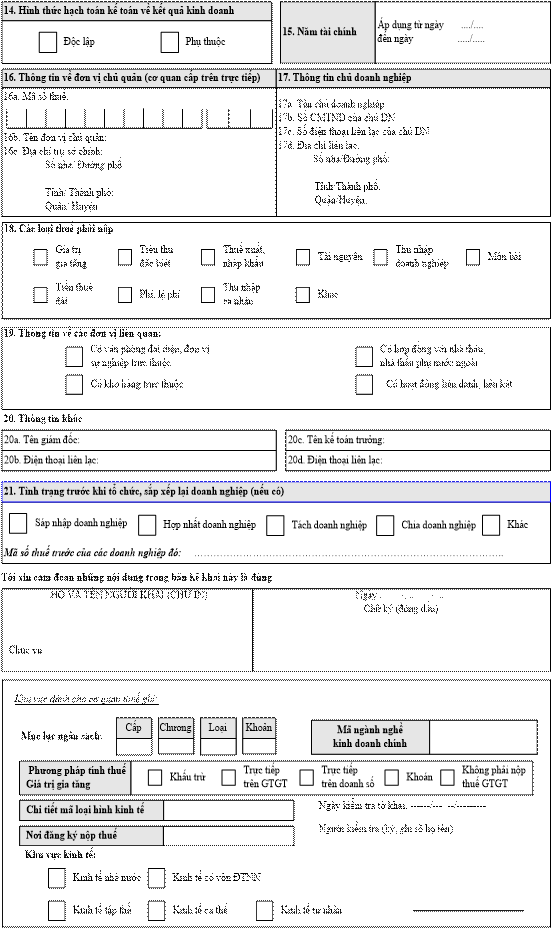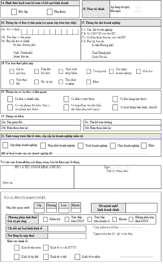 Mẫu số 02-ĐK-TCT: dùng cho các đơn vị trực thuộc của tổ chức sản xuất, kinh doanh hàng hoá và cung ứng dịch vụ.