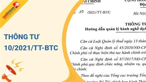Ngày 26/01/2021, Bộ Tài chính đã ban hành Thông tư 10/2021/TT-BTC hướng dẫn quản lý hành nghề dịch vụ làm thủ tục về thuế.
