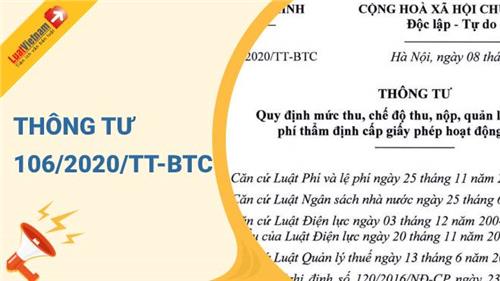 Thông tư 106/2020/TT-BTC mức thu, chế độ thu, nộp, quản lý và sử dụng phí thẩm định cấp giấy phép hoạt động điện lực