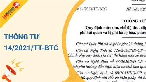 Ngày 18/02/2021, Bộ Tài chính ban hành Thông tư 14/2021/TT-BTC về việc quy định mức thu, chế độ thu, nộp, quản lý và sử dụng phí hải quan và lệ phí hàng hóa, phương tiện vận tải quá cảnh.