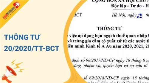 Bộ trưởng Bộ Công Thương ban hành Thông tư quy định về việc áp dụng hạn ngạch thuế quan nhập khẩu thuốc lá nguyên liệu và trứng gia cầm có xuất xứ từ các nước thành viên của Liên minh Kinh tế Á Âu năm 2020, 2021, 2022.