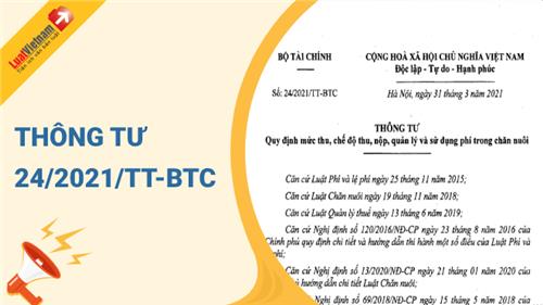 Ngày 31/3/2021, Bộ Tài chính đã ban hành Thông tư 24/2021/TT-BTC về việc quy định mức thu, chế độ thu, nộp, quản lý và sử dụng phí trong chăn nuôi.