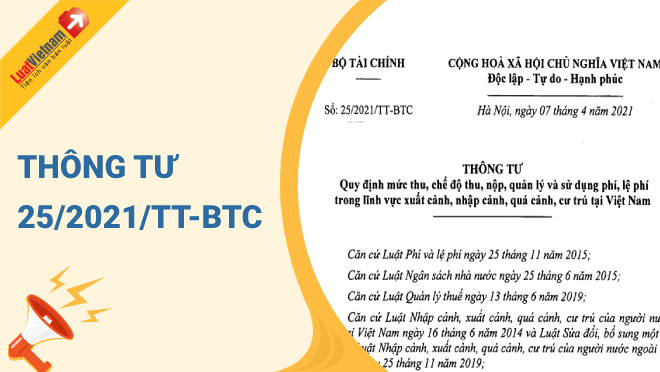 Ngày 07/4/2021, Bộ Tài chính ban hành Thông tư 25/2021/TT-BTC về việc quy định mức thu, chế độ thu, nộp, quản lý và sử dụng phí, lệ phí trong lĩnh vực xuất cảnh, nhập cảnh, quá cảnh, cư trú tại Việt Nam.
