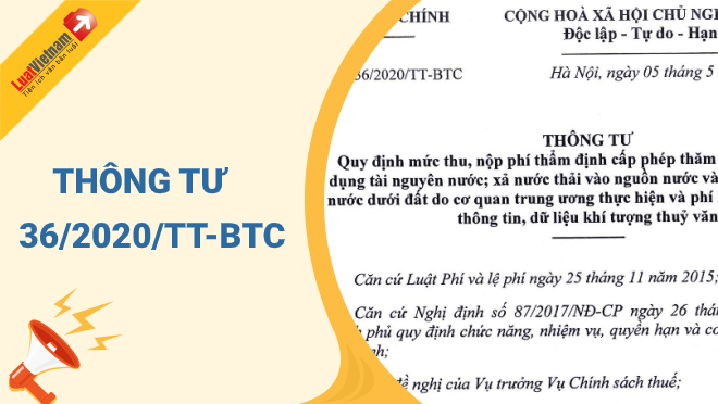 Ngày 05/5/2020, Bộ Tài chính ban hành Thông tư 36/2020/TT-BTC về việc quy định mức thu, nộp phí thẩm định cấp phép thăm dò, khai thác, sử dụng tài nguyên nước; xả nước thải vào nguồn nước và hành nghề khoan nước dưới đất do cơ quan trung ương thực hiện và phí khai thác, sử dụng thông tin, dữ liệu khí tượng thủy văn.