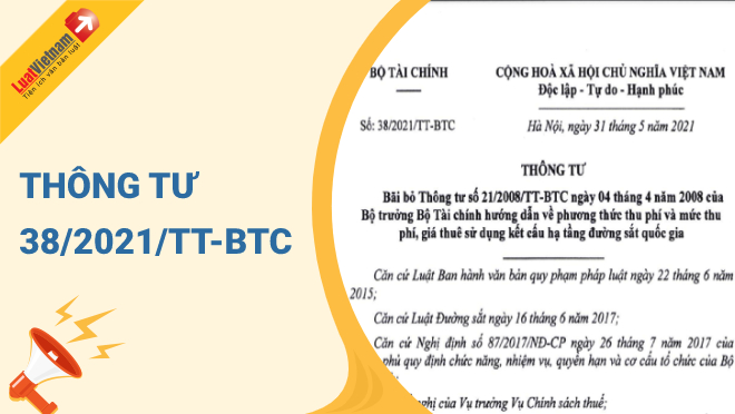 Ngày 31/5/2021, Bộ Tài chính ban hành Thông tư 38/2021/TT-BTC về việc bãi bỏ Thông tư 21/2008/TT-BTC ngày 04/4/2008 của Bộ trưởng Bộ Tài chính hướng dẫn về phương thức thu phí và mức thu phí, giá thuê sử dụng kết cấu hạ tầng đường sắt quốc gia.