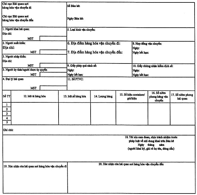 (dùng cho cả cơ quan hải quan và doanh nghiệp)
