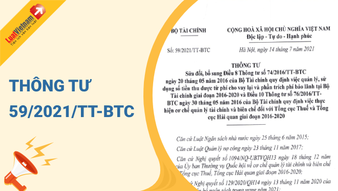 Thông tư 59/2021/TT-BTC sửa đổi Điều 8 Thông tư 74/2016/TT-BTC và Điều 10 Thông tư 76/2016/TT-BTC