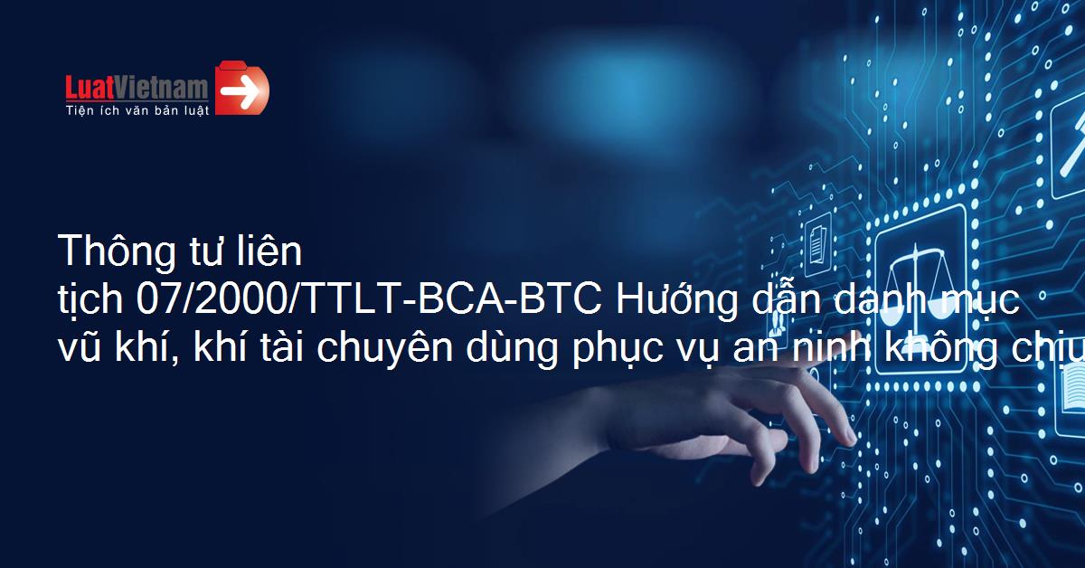 Thông tư liên tịch 07/2000/TTLT-BCA-BTC Hướng dẫn danh mục vũ khí, khí tài chuyên dùng phục vụ an ninh không chịu thuế giá trị gia tăng