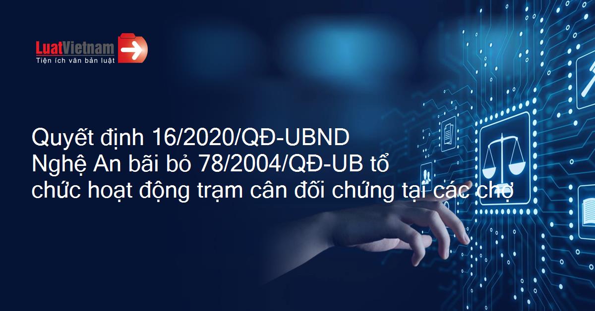 Quyết định 16/2020/QĐ-UBND Nghệ An bãi bỏ 78/2004/QĐ-UB tổ chức hoạt động trạm cân đối chứng tại các chợ