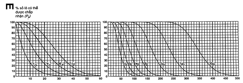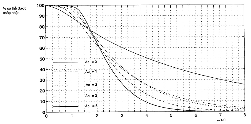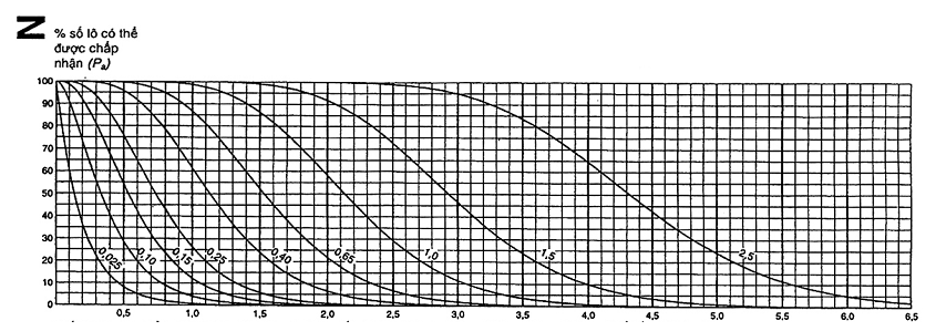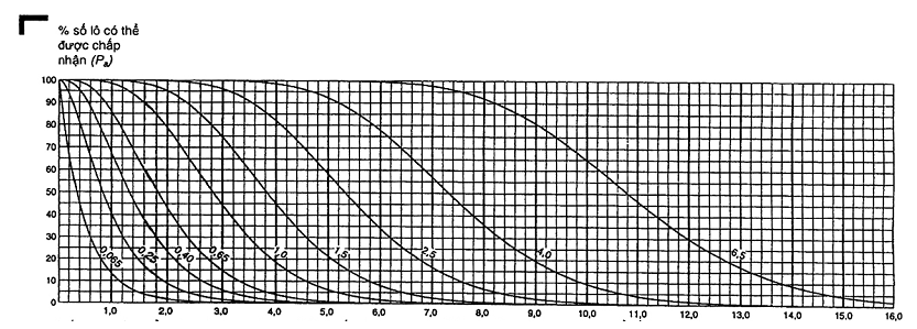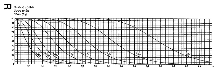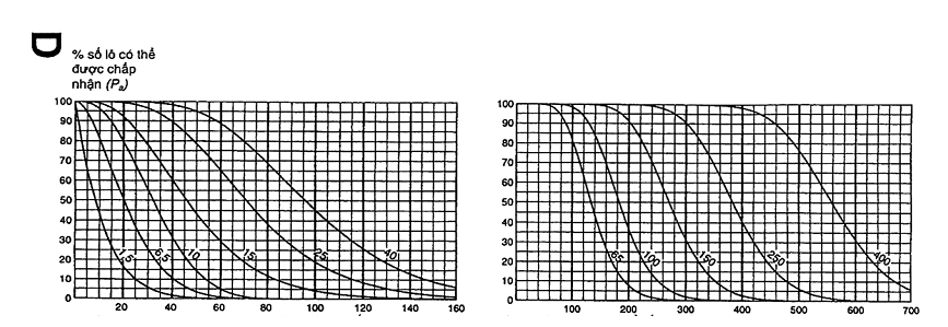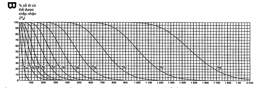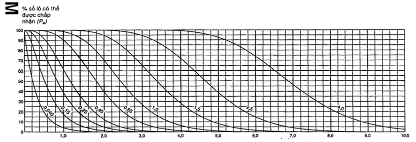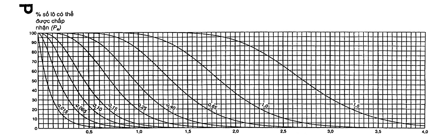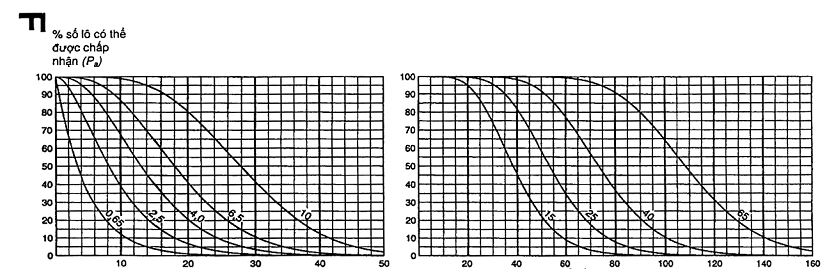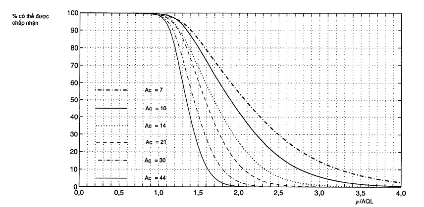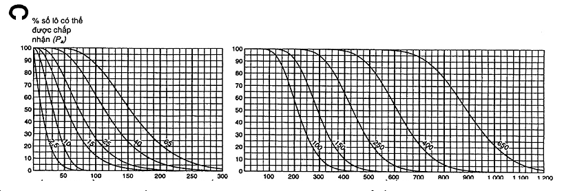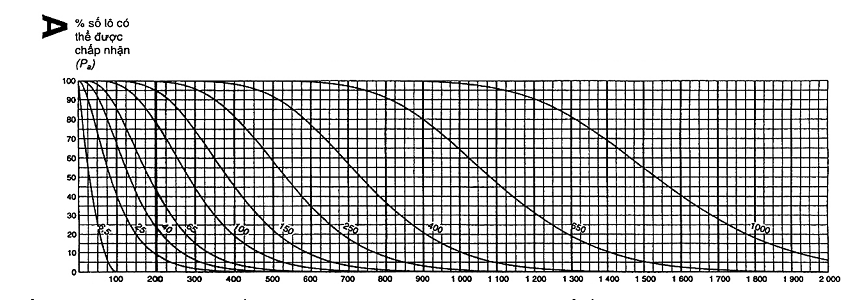 CHÚ THÍCH: AC tại mỗi đường cong thể hiện số chấp nhận trong kiểm tra thông thường