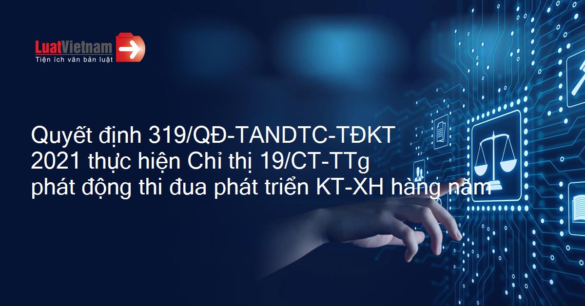 Ngày 24/09/2021, Toà án nhân dân tối cao ra Quyết định 319/QĐ-TANDTC-TĐKT về việc ban hành Kế hoạch thực hiện Chỉ thị 19/CT-TTg ngày 16/7/2021 của Thủ tướng Chính phủ về việc phát động thi đua thực hiện thắng lợi nhiệm vụ phát triển kinh tế - xã hội hằng năm và Kế hoạch 5 năm (2021-2025) theo Nghị quyết Đại hội đại biểu toàn quốc lần thứ XIII của Đảng trong Tòa án nhân dân (Chỉ thị số 19/CT-TTg).