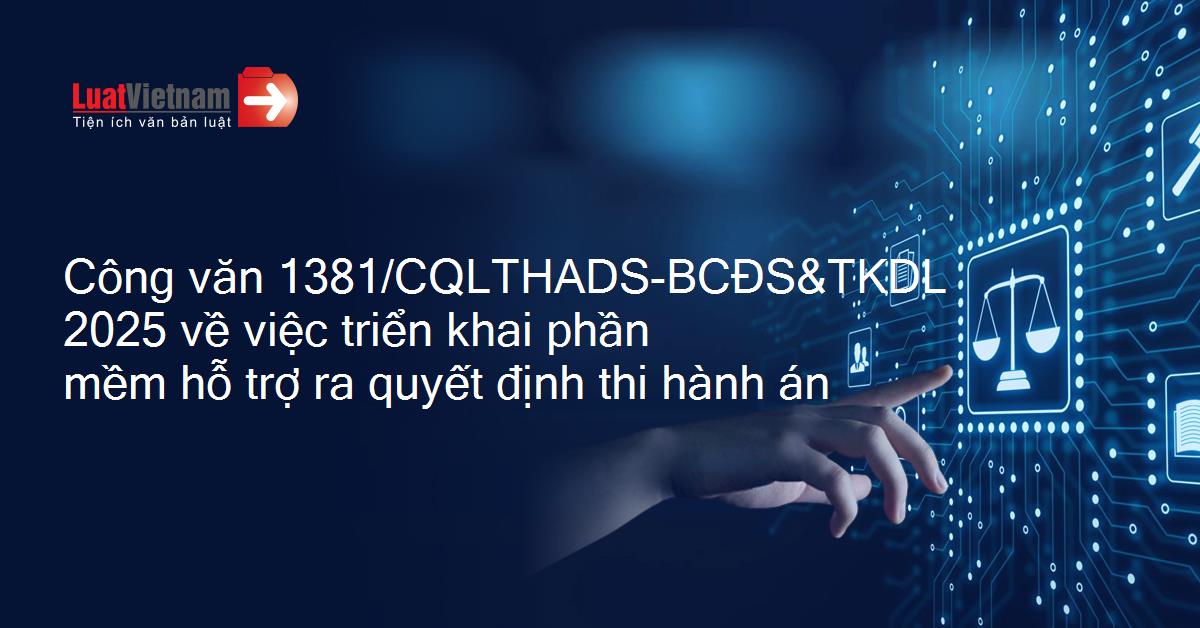 Công văn 1381/CQLTHADS-BCĐS&TKDL 2025 về việc triển khai phần mềm hỗ trợ ra quyết định thi hành án