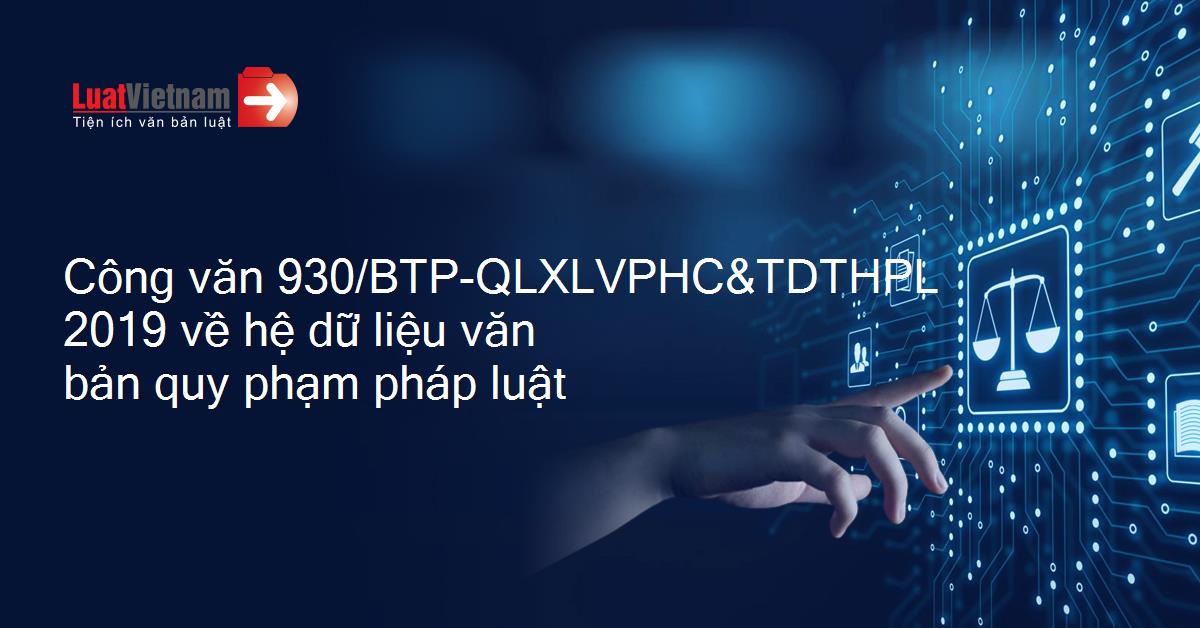 Công văn 930/BTP-QLXLVPHC&TDTHPL 2019 về hệ dữ liệu văn bản quy phạm pháp luật