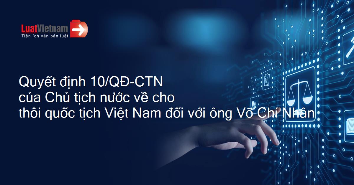 Quyết định 10/QĐ-CTN của Chủ tịch nước về cho thôi quốc tịch Việt Nam đối với ông Võ Chí Nhân