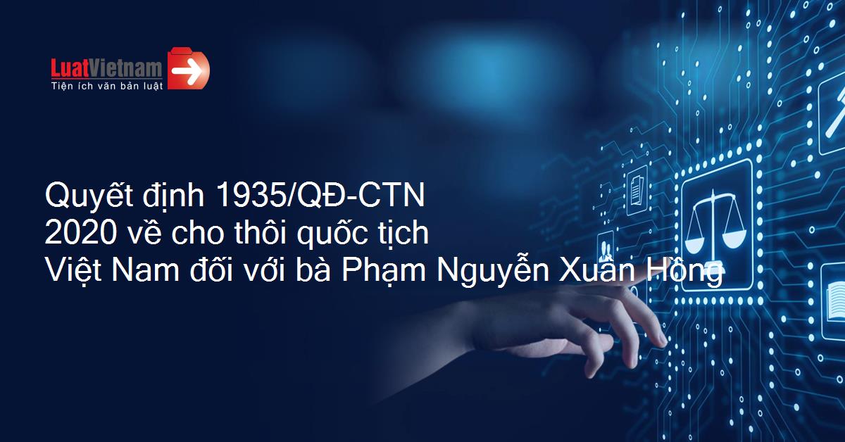Quyết định 1935/QĐ-CTN 2020 về cho thôi quốc tịch Việt Nam đối với bà Phạm Nguyễn Xuân Hồng