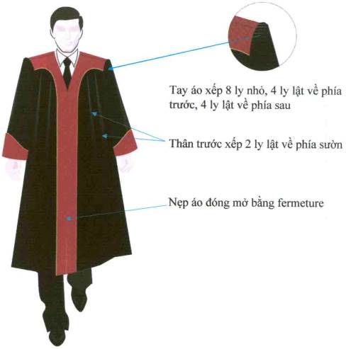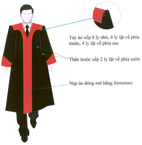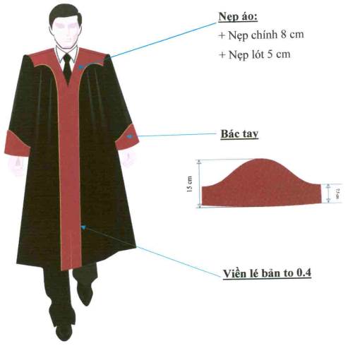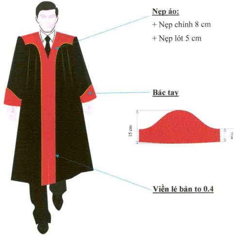 3. Họa tiết: Áo màu đen phối nẹp, bác tay và cầu vai tương ứng với từng ngạch Thẩm phán, cụ thể như sau: