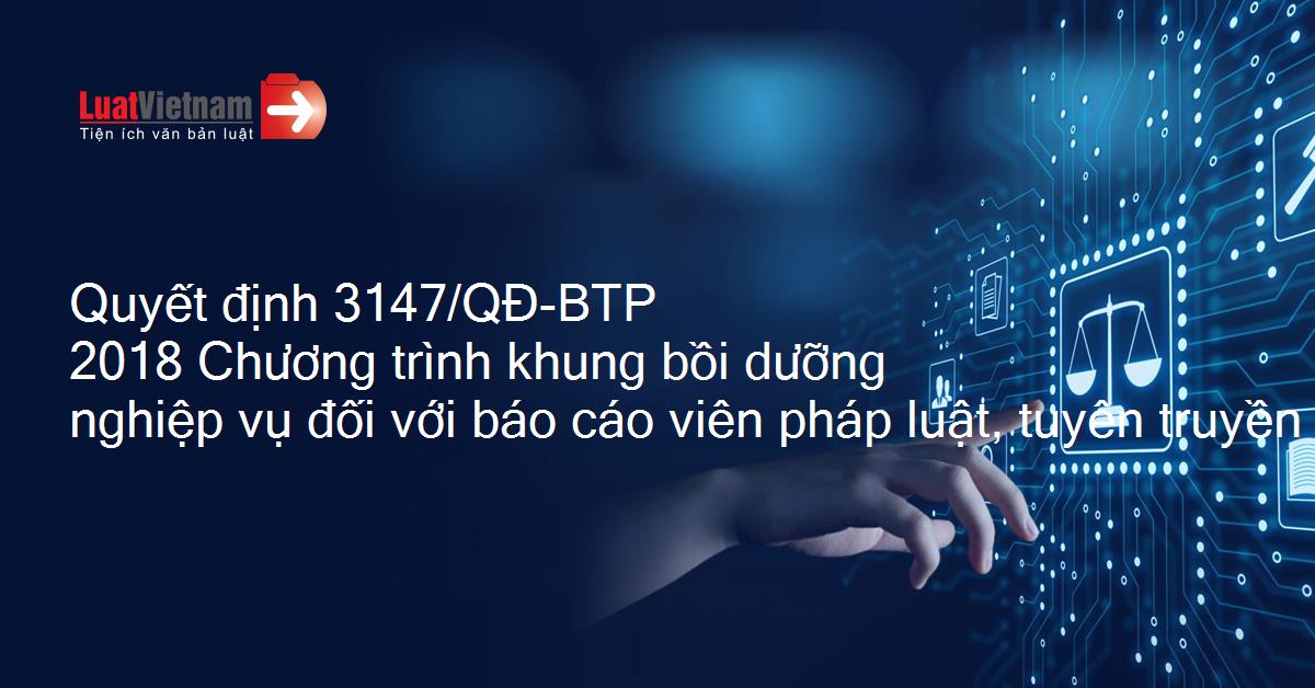 Quyết định 3147/QĐ-BTP 2018 Chương trình khung bồi dưỡng nghiệp vụ đối với báo cáo viên pháp luật, tuyên truyền viên pháp luật