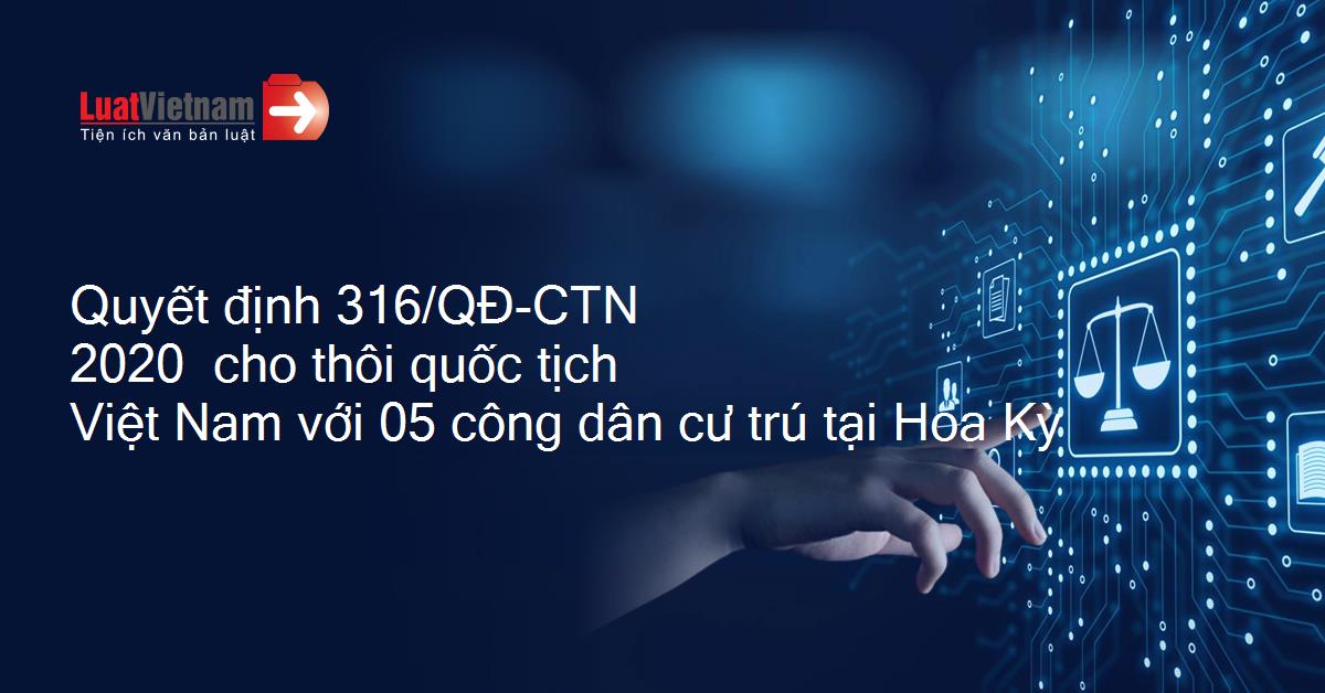 Quyết định 316/QĐ-CTN 2020 cho thôi quốc tịch Việt Nam với 05 công dân cư trú tại Hoa Kỳ