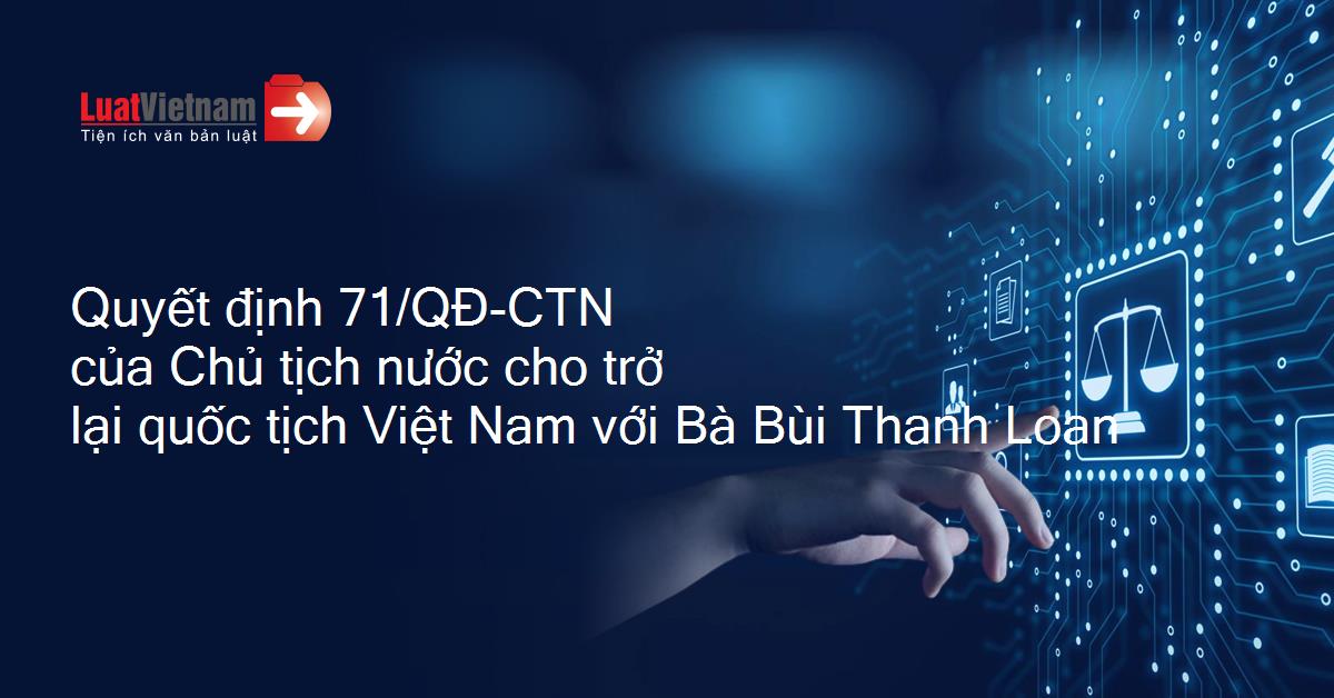 Quyết định 71/QĐ-CTN của Chủ tịch nước cho trở lại quốc tịch Việt Nam với Bà Bùi Thanh Loan