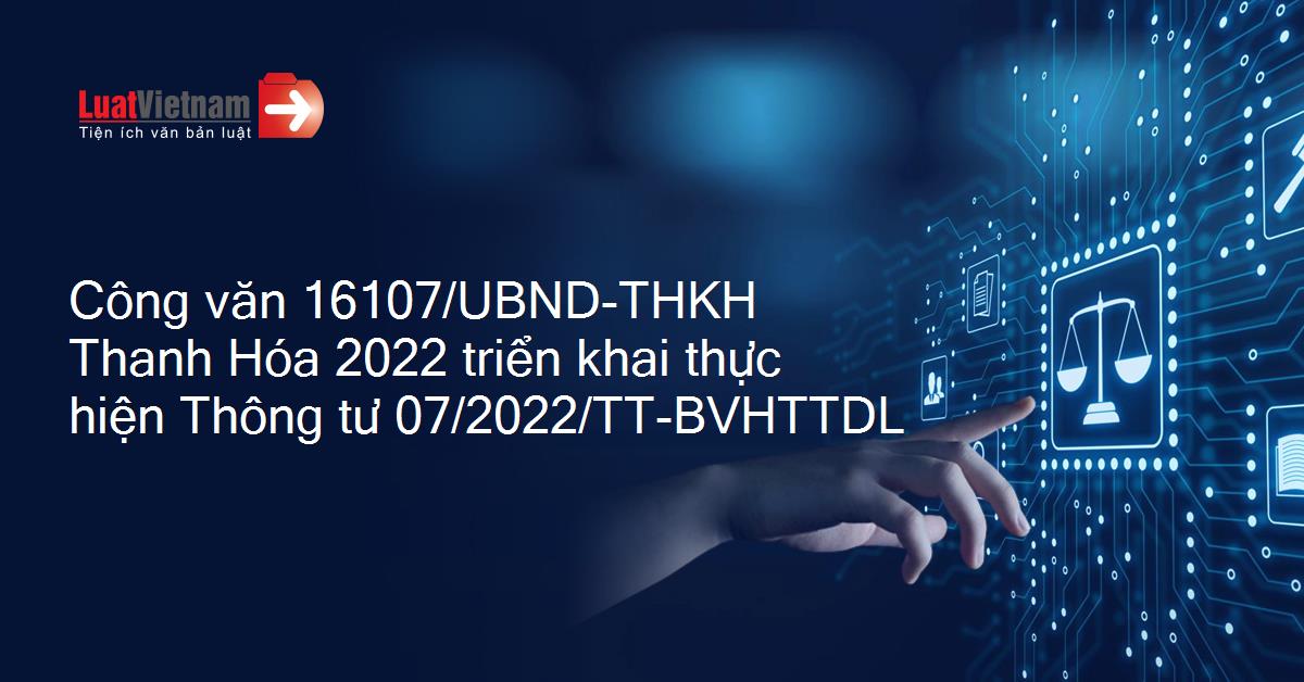 Công văn 16107/UBND-THKH của Ủy ban nhân dân tỉnh Thanh Hóa về việc triển khai thực hiện Thông tư 07/2022/TT-BVHTTDL ngày 25/10/2022 của Bộ trưởng Bộ Văn hóa, Thể thao và Du lịch
