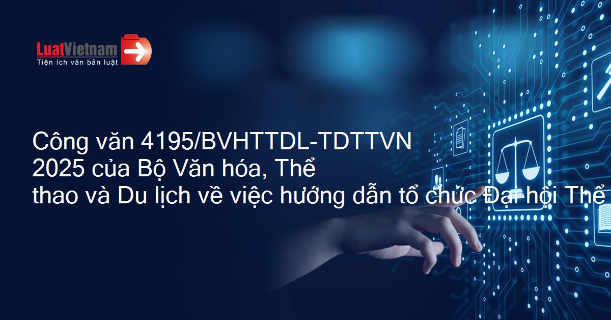 Công văn 4195/BVHTTDL-TDTTVN 2025 của Bộ Văn hóa, Thể thao và Du lịch về việc hướng dẫn tổ chức Đại hội Thể dục thể thao các cấp sau sáp nhập