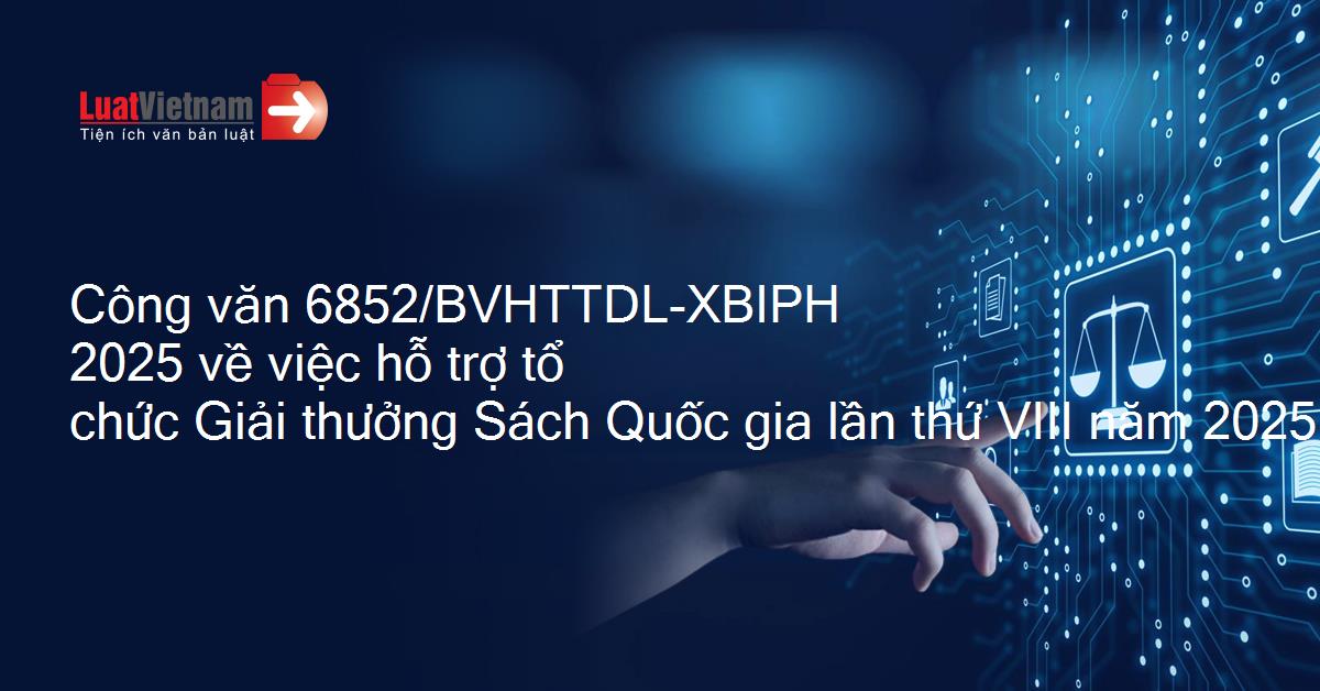 Công văn 6852/BVHTTDL-XBIPH 2025 về việc hỗ trợ tổ chức Giải thưởng Sách Quốc gia lần thứ VIII năm 2025