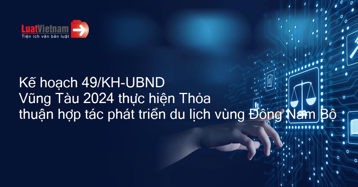 Kế hoạch 49/KH-UBND Vũng Tàu 2024 thực hiện Thỏa thuận hợp tác phát triển du lịch vùng Đông Nam Bộ