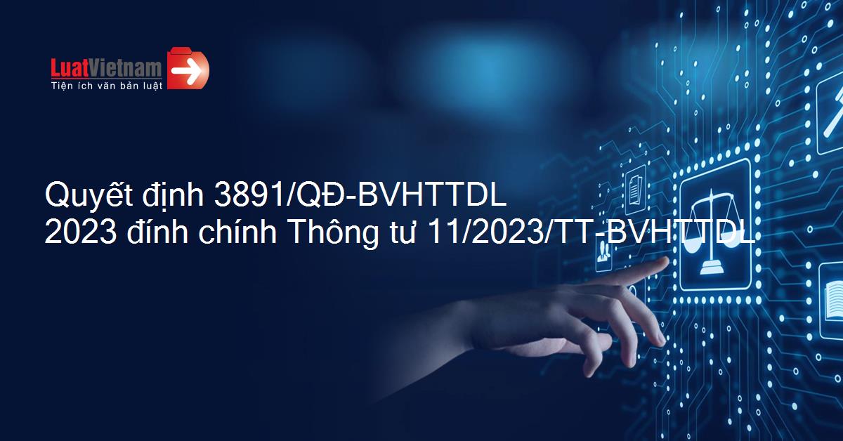 Quyết định 3891/QĐ-BVHTTDL 2023 đính chính Thông tư 11/2023/TT-BVHTTDL