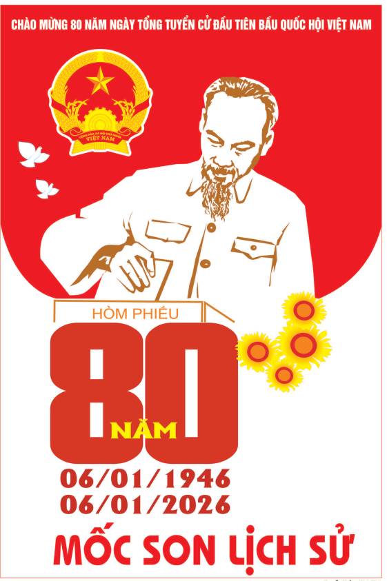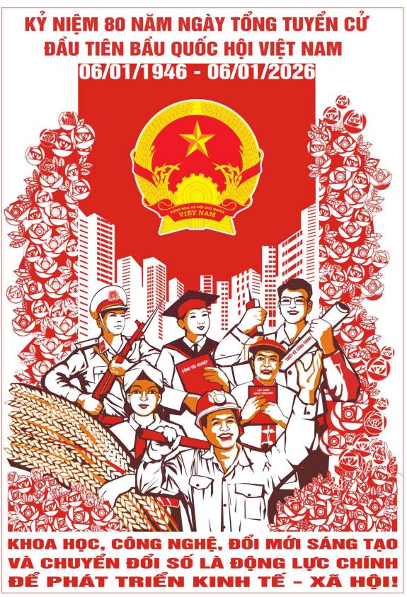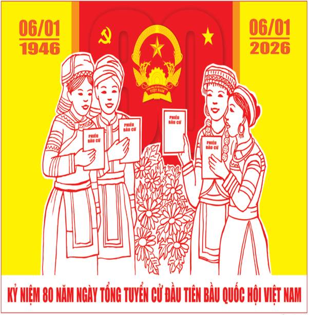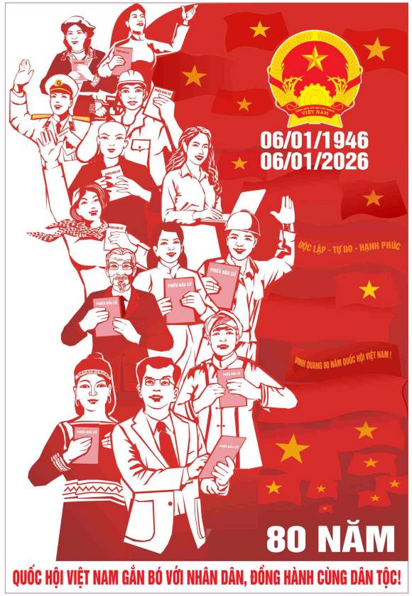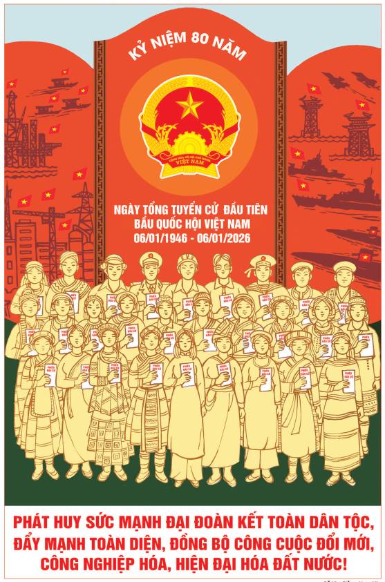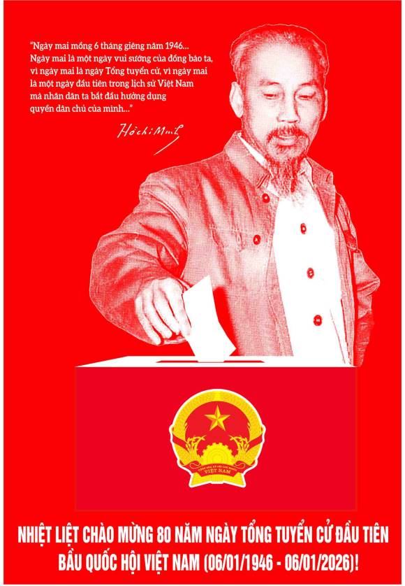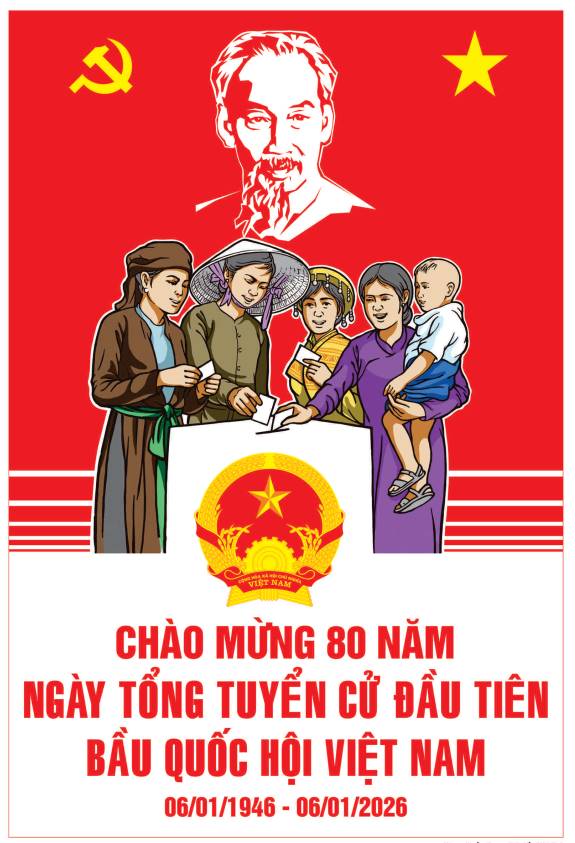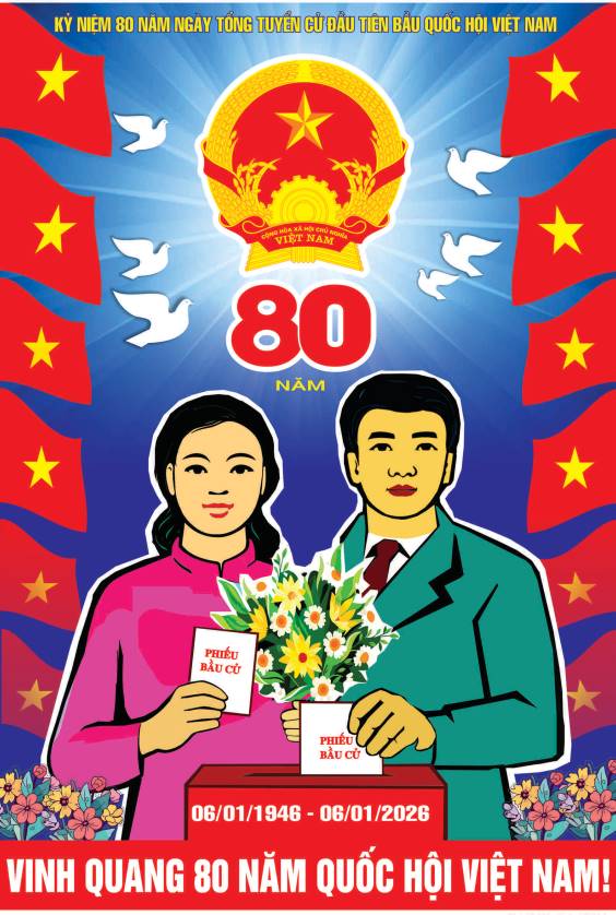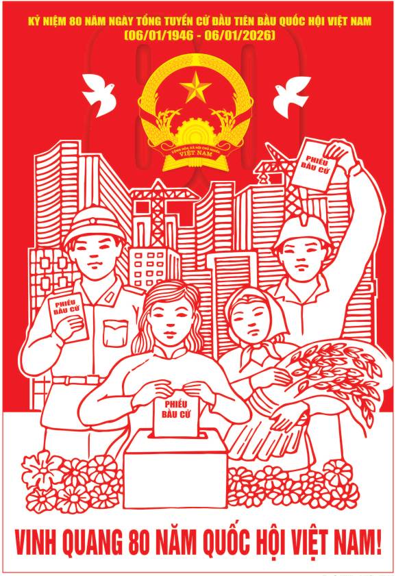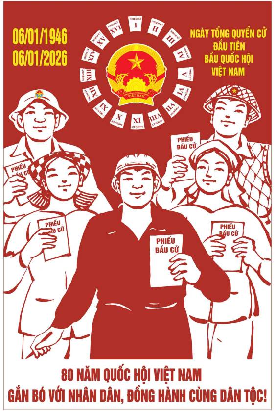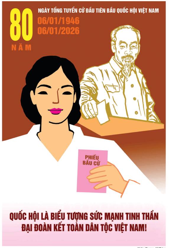 34. Tác phẩm: Nhiệt liệt chào mừng 80 năm Ngày Tổng tuyển cử đầu tiên bầu Quốc hội Việt Nam (06/01/1946 - 06/01/2026) (Tranh số 38)