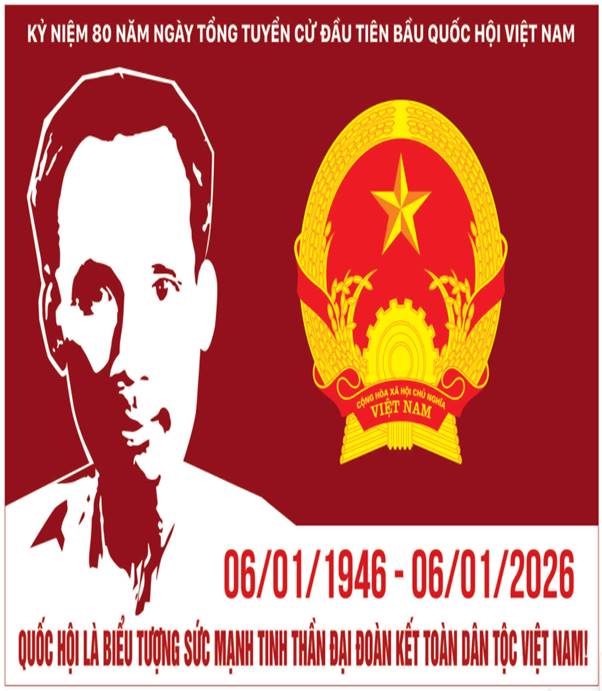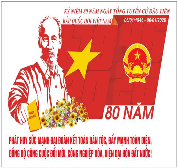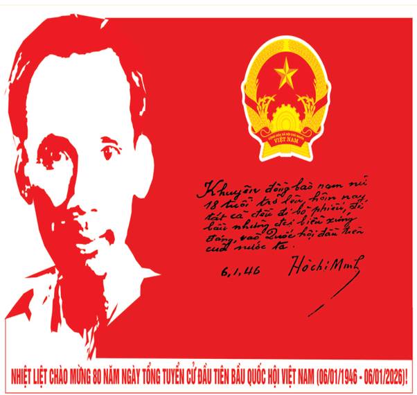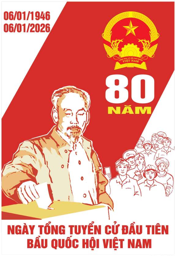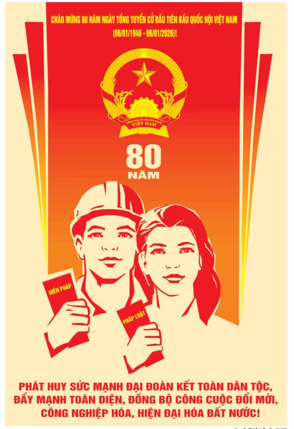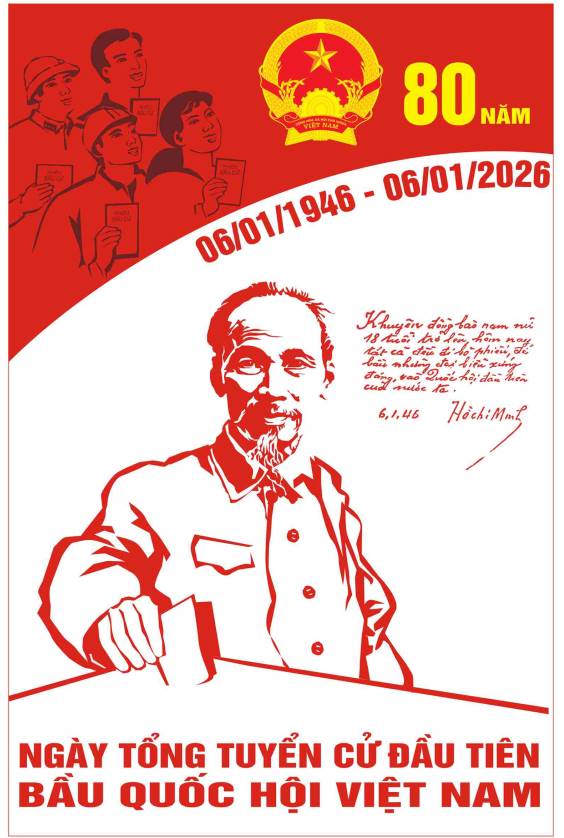 1. Tác phẩm: Chào mừng 80 năm Ngày Tổng tuyển cử đầu tiên bầu Quốc hội Việt Nam (06/01/1946 - 06/01/2026) (Tranh số 1)