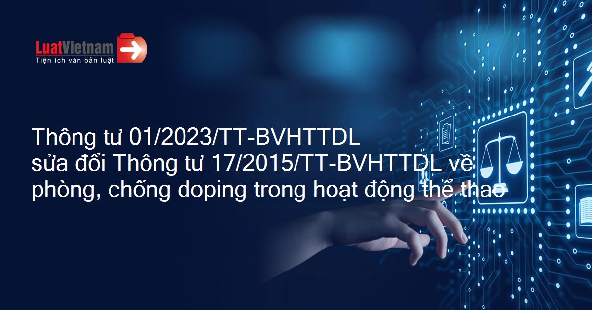 Ngày 21/02/2023, Bộ Văn hóa, Thể thao và Du lịch đã ban hành Thông tư 01/2023/TT-BVHTTDL về việc sửa đổi, bổ sung một số điều của Thông tư số 17/2015/TT-BVHTTDL ngày 30/12/2015 của Bộ trưởng Bộ Văn hóa, Thể thao và Du lịch quy định về phòng, chống doping trong hoạt động thể thao.
