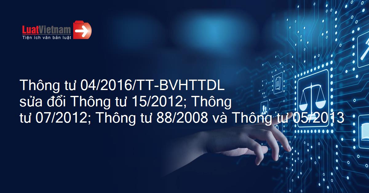 Thông tư 04/2016/TT-BVHTTDL sửa đổi Thông tư 15/2012; Thông tư 07/2012; Thông tư 88/2008 và Thông tư 05/2013