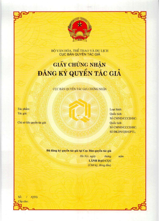 MẪU GIẤY CHỨNG NHẬN ĐĂNG KÝ QUYỀN TÁC GIẢ;