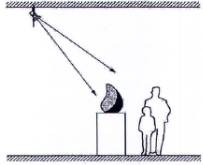 - khía cạnh thị giác, liên quan đến tác động của ánh sáng đối với trải nghiệm của khách tham quan: ánh sáng phải cho phép khách tham quan xem các hiện vật trên trưng bày, với cảm nhận màu sắc chính xác mà không bị chói, phản xạ hoặc độ rọi không đủ sáng,