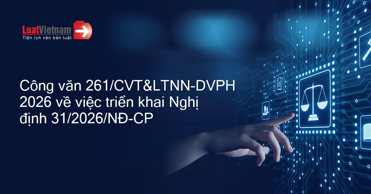 Công văn 261/CVT<NN-DVPH 2026 về việc triển khai Nghị định 31/2026/NĐ-CP