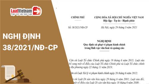 Ngày 29/3/2021, Chính phủ ban hành Nghị định 38/2021/NĐ-CP về việc quy định xử phạt vi phạm hành chính trong lĩnh vực văn hóa và quảng cáo.