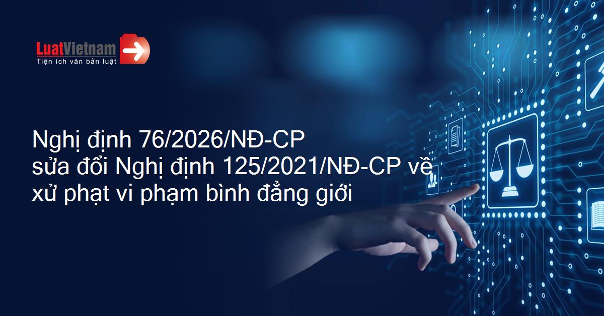Nghị định 76/2026/NĐ-CP của Chính phủ sửa đổi, bổ sung một số điều của Nghị định 125/2021/NĐ-CP ngày 28/12/2021 của Chính phủ quy định xử phạt vi phạm hành chính trong lĩnh vực bình đẳng giới