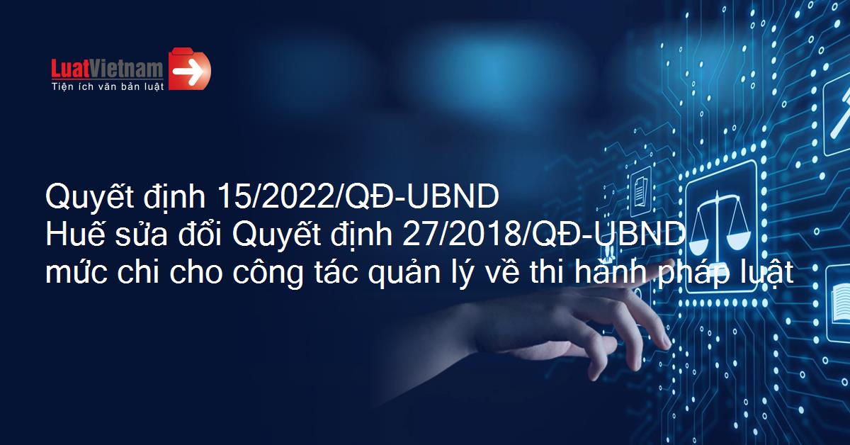 Quyết định 15/2022/QĐ-UBND Huế sửa đổi Quyết định 27/2018/QĐ-UBND mức chi cho công tác quản lý về thi hành pháp luật