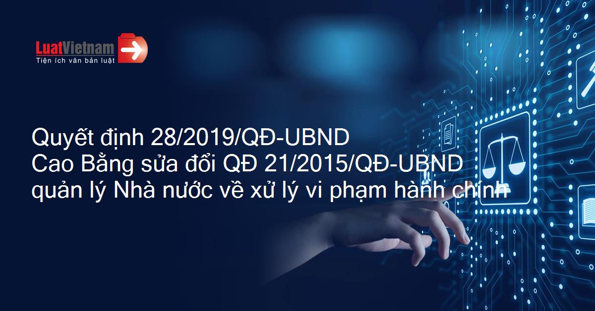 Quyết định 28/2019/QĐ-UBND Cao Bằng sửa đổi QĐ 21/2015/QĐ-UBND quản lý Nhà nước về xử lý vi phạm hành chính