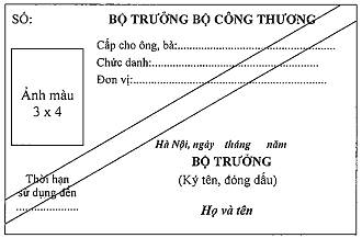 a) Đóng con dấu của Bộ Công Thương và dấu nổi của Bộ Công Thương vào ảnh màu đối với Thẻ quy định tại điểm a khoản 1 Điều này;