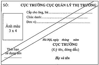 b) Đối với Thẻ cấp cho công chức Quản lý thị trường quy định tại khoản 2 Điều 16 Pháp lệnh Quản lý thị trường (mẫu Thẻ và mô tả Thẻ theo Phụ lục số 5 ban hành kèm theo Thông tư này).