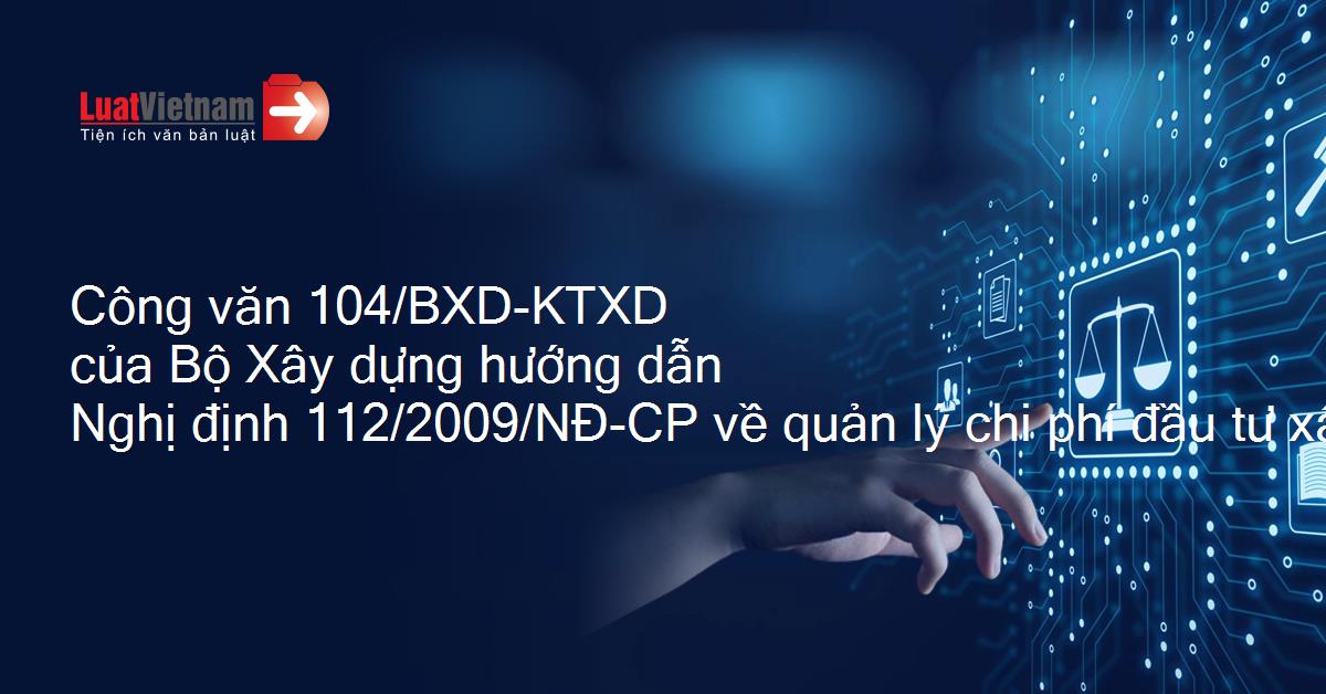Công văn 104/BXD-KTXD của Bộ Xây dựng hướng dẫn Nghị định 112/2009/NĐ-CP về quản lý chi phí đầu tư xây dựng công trình
