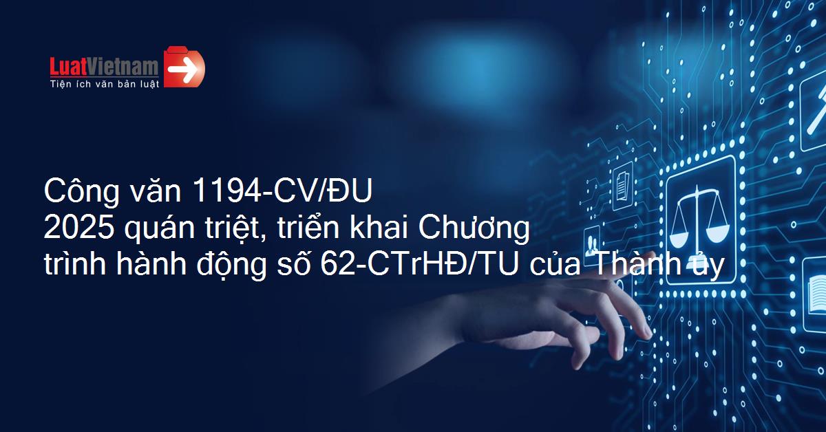 Công văn 1194-CV/ÐU 2025 quán triệt, triển khai Chương trình hành động số 62-CTrHĐ/TU của Thành ủy