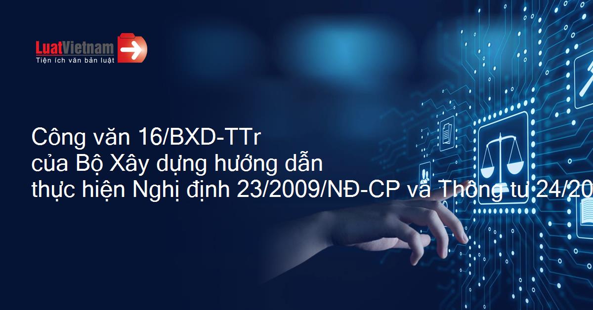 Công văn 16/BXD-TTr của Bộ Xây dựng hướng dẫn thực hiện Nghị định 23/2009/NĐ-CP và Thông tư 24/2009/TT-BXD