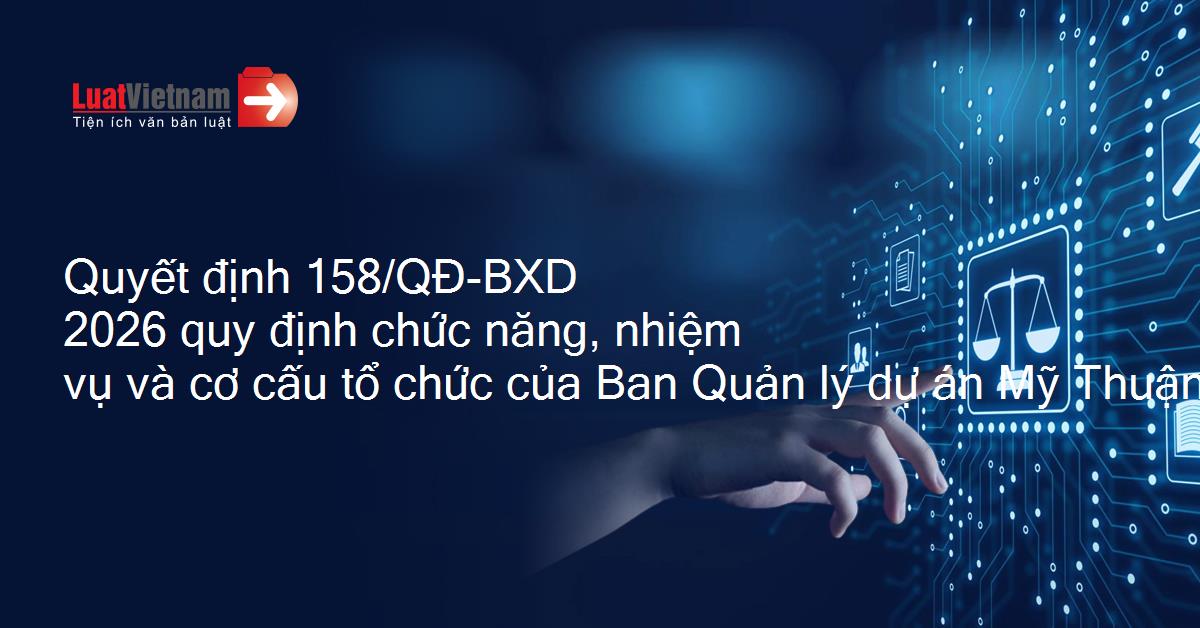 Quyết định 158/QĐ-BXD 2026 quy định chức năng, nhiệm vụ và cơ cấu tổ chức của Ban Quản lý dự án Mỹ Thuận