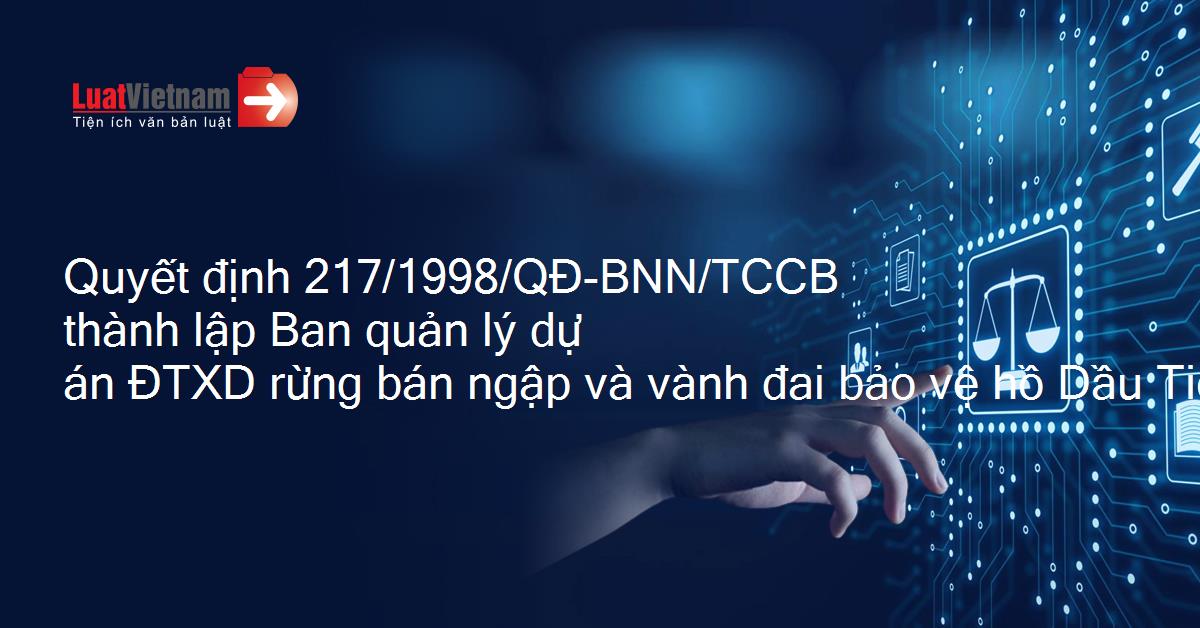 Quyết định 217/1998/QĐ-BNN/TCCB thành lập Ban quản lý dự án ĐTXD rừng bán ngập và vành đai bảo vệ hồ Dầu Tiếng